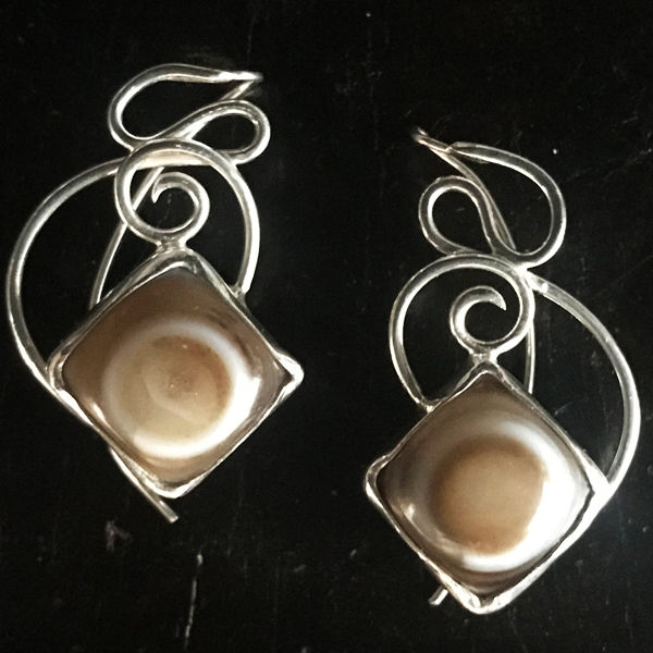 In the beginning of my career I made earring designs that I hung from ready-made "french wires" because I thought that was how pierced earrings existed if not on a post. I quickly shifted to making the french wire design myself. My satisfaction was short-lived because the hook represented a straight line above the center of the design and my designs were becoming asymmetrical. I wondered if I swished the earwire off to the side, the earring would hang properly or if it might be cock-eyed. One way to find out. Swish improved the balance of the piece! Asymmetry and mirror opposite designs with swished earwires became my norm. Then one day I wondered what craziness I was thinking when I wanted to swish the earwire so that it came through the back of the ear. I was embarrassed by my own audacity, but it seemed to work. That first pair of "Reverse Hook" earrings sold quickly, but I only took that as my luck not to have to be embarrassed for too long. Years passed before I did that again. Perhaps with age comes design wisdom and